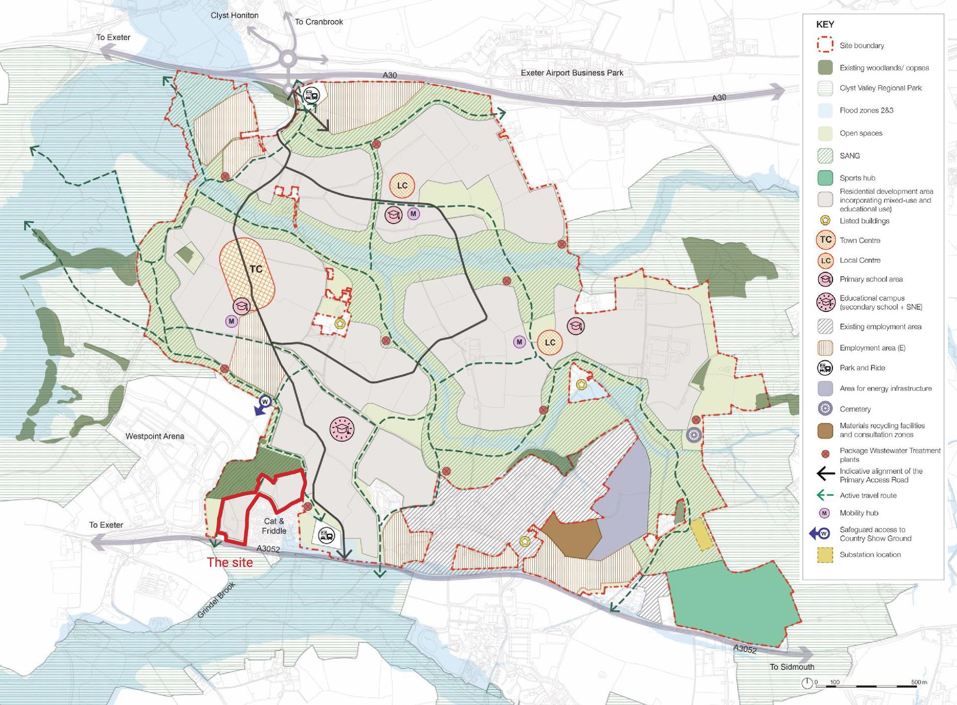The Masterplan for Marlcombe proposes that the land at Cat Copse is to be used for residential purposes, with a new footpath/cycle link to be provided to link the new settlement to Sidmouth Road. The scheme mirrors these objectives.