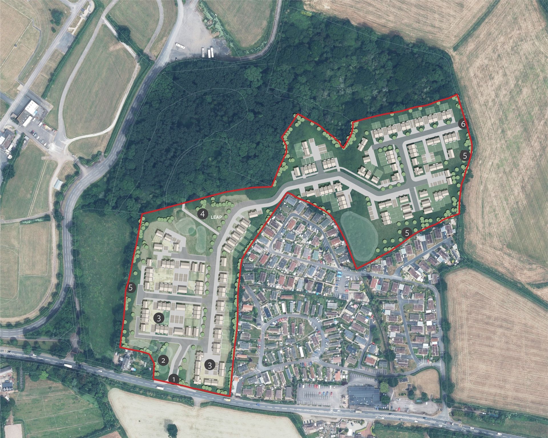 The plan incorporates generous amounts of open space, retains the important trees and hedgerows that bound the site and respects its location near to existing dwellings. To the north of the site there is also an opportunity to preserve and enhance the Cat Copse woodland area.